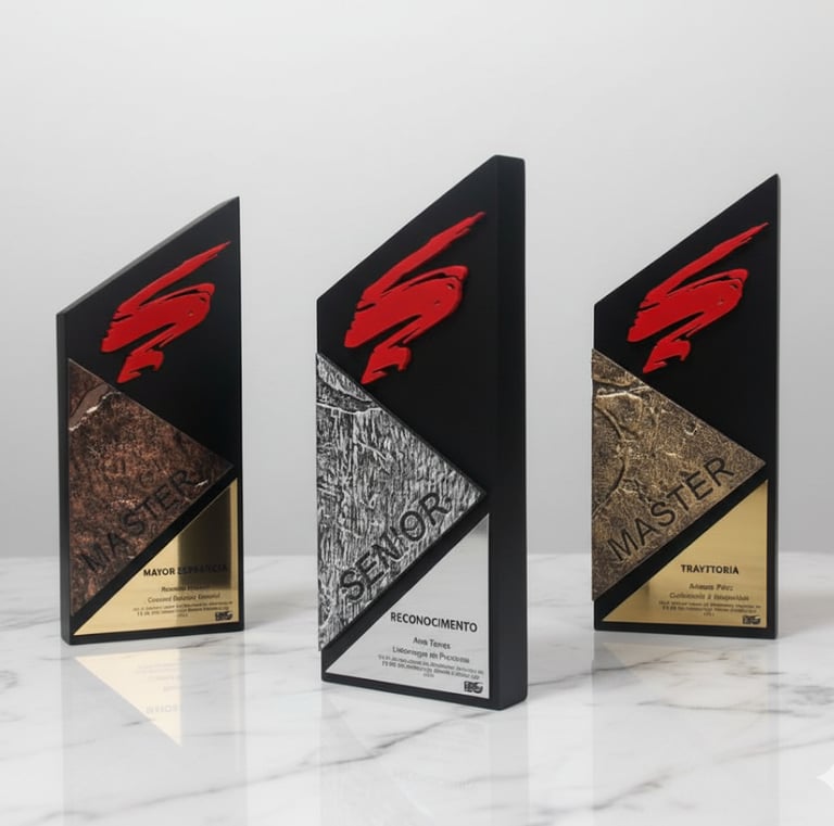 Explora nuestros diseños de reconocimientos y trofeos únicos.